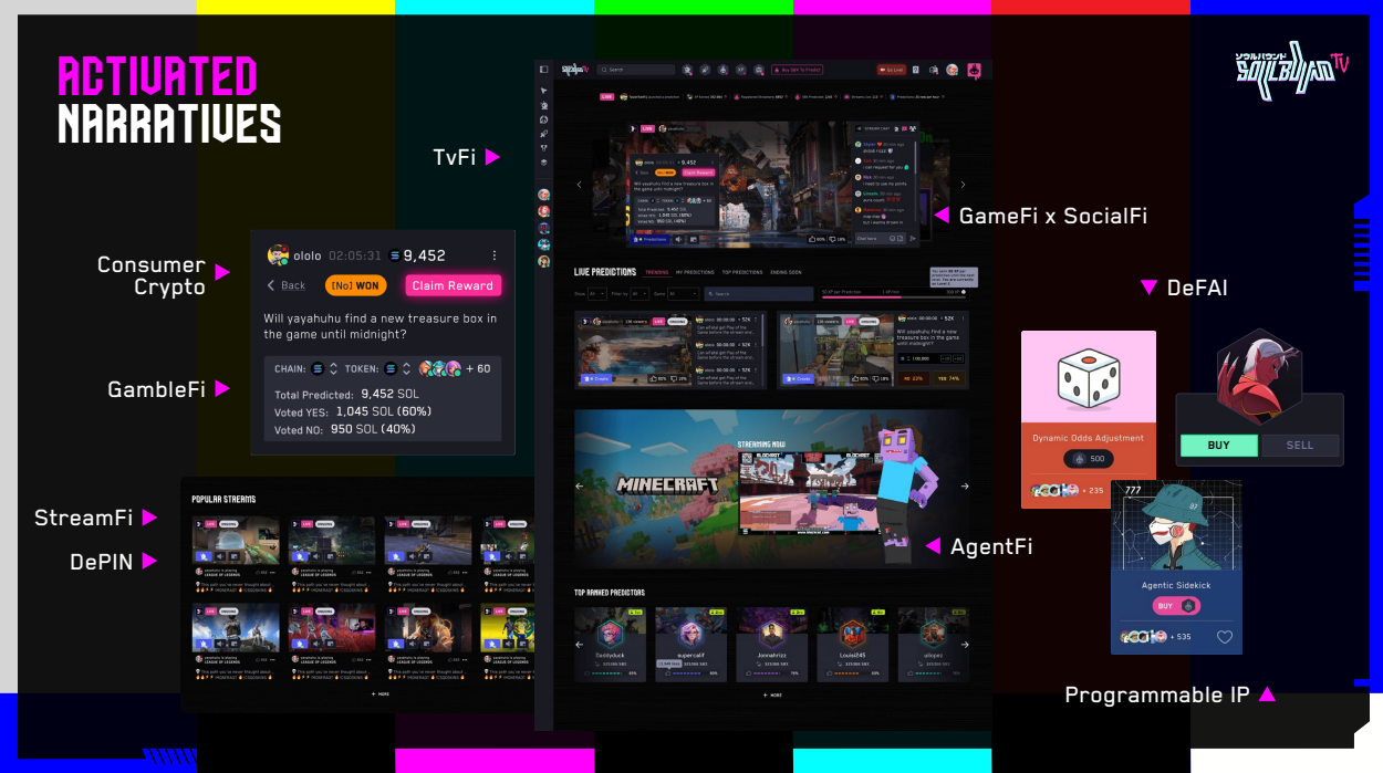If Twitch, Polymarket, and Virtuals had a love child raised on AI and blockchain, you’d get Soulbound.TV—but even that doesn’t quite capture what we’re building.