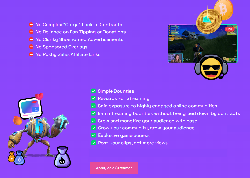 We’re talking about a system that <mark style="color:yellow;">**pays streamers to promote your game**</mark> and <mark style="color:green;">**gets users hooked**</mark> on watching, engaging, and spreading the word. 🎯