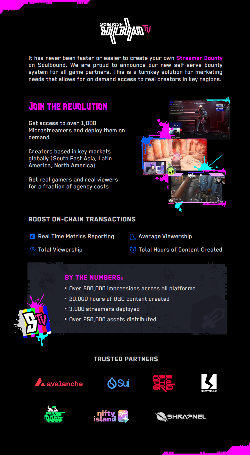 Ready for **record-breaking engagement** and viral UGC? Soulbound’s Bounties turn every stream into a <mark style="color:red;">**growth engine**</mark>. 🎯