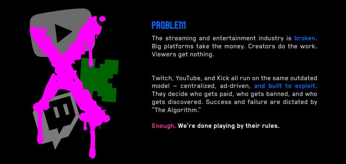 Let’s face it: the big platforms are rigged. 🙅‍♂️ Twitch and YouTube? They care about one thing—lining their pockets. Smaller streamers? Practically invisible. 🎮