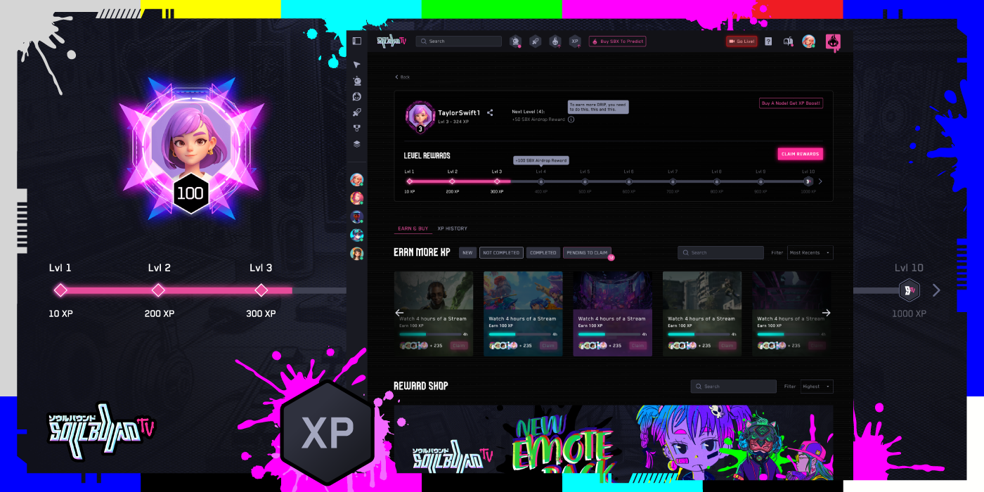 We’ve been hard at work developing an XP system that transforms the way both streamers and viewers engage with content. Partnering closely with our product and ecosystem designers, we’ve engineered a levelling system reminiscent of modern RPGs — where progression unlocks real rewards, and effort translates into tangible benefits. This isn’t just a cosmetic system; it directly affects SBX earning rates and payouts, platform upgrades, and a user’s experience of the ecosystem.